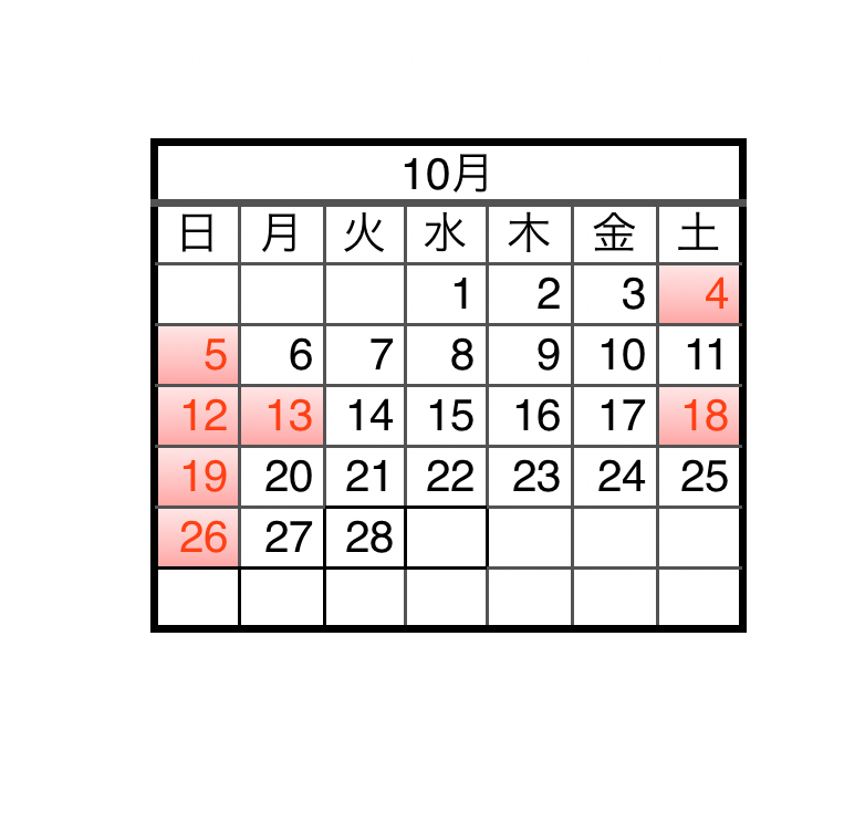 休業日は毎週日曜、第1第3土曜日、祝日(13日)とさせて頂きます。